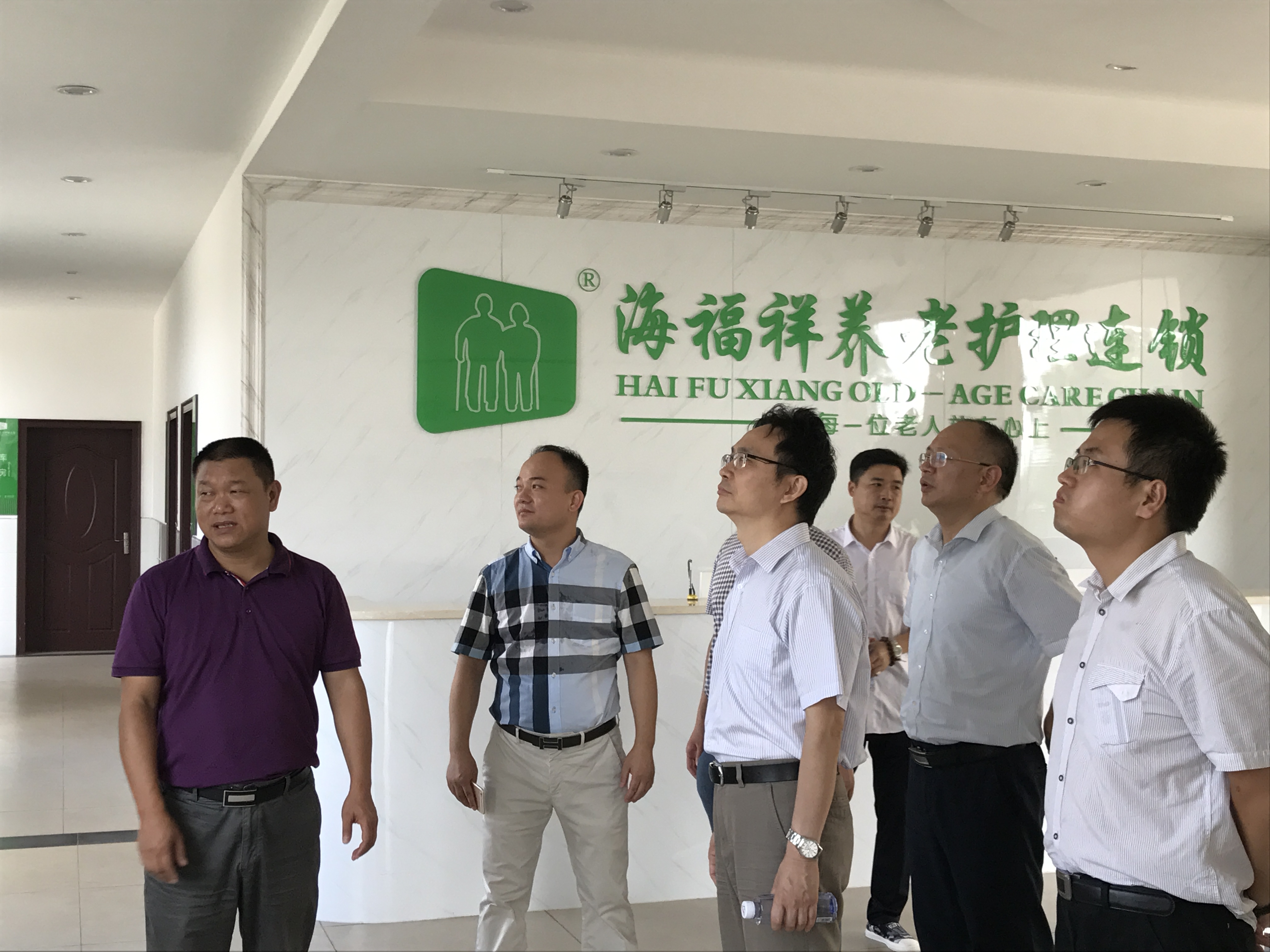 2017年8月3日上午,民政部社会福利中心党委书记甄炳亮来我院视察建设、管理以及运营工作。陪同人员有:株洲市民政局副局长汤爱军、株洲市民政局社会福利科科长高章明、株洲县民政局局长冯卫平、株洲县社会福利中心主任晏希以及海福祥养老护理连锁董事长苏金水。