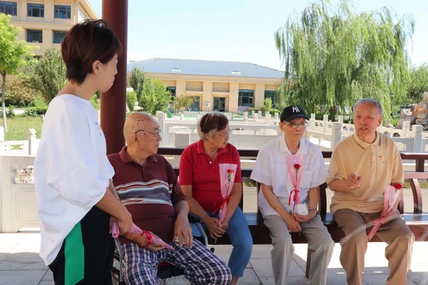 在天津静海海福祥养老护理院,退休老教师备受尊重和关爱。暖心的医护不仅为每位老教师都送上了感恩的鲜花和手写的贺卡,更别具匠心的为长者们举行了“我的教学生涯”座谈会。在后院的凉亭下,老教师们坐在一起畅聊花样年华,分享记忆里有趣有爱的故事。